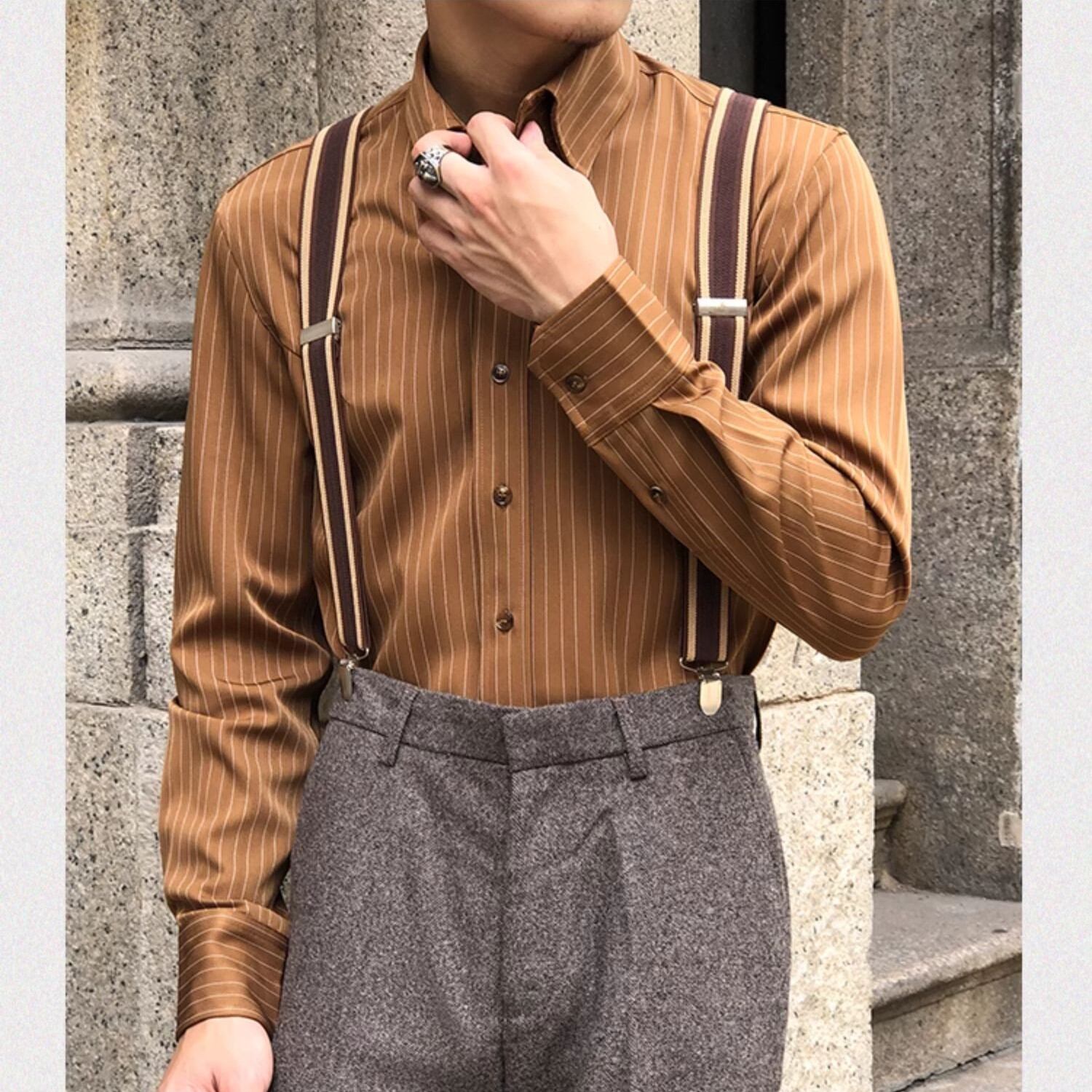 M0002 / レトロストライプ柄ロングスリーブシャツ / 3 color