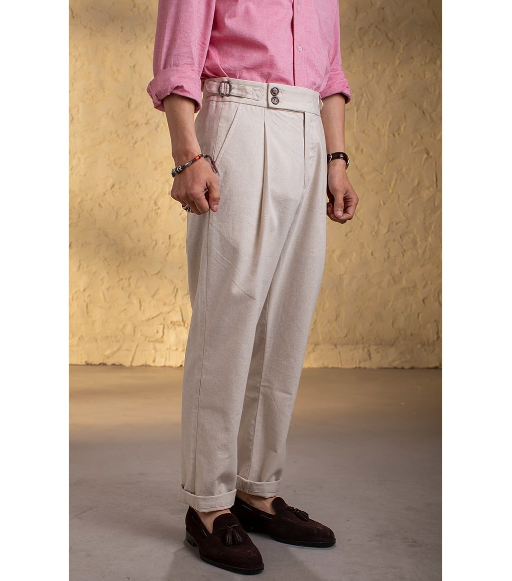 時代を超えて愛される、ヴィンテージ調のテーパードパンツ。