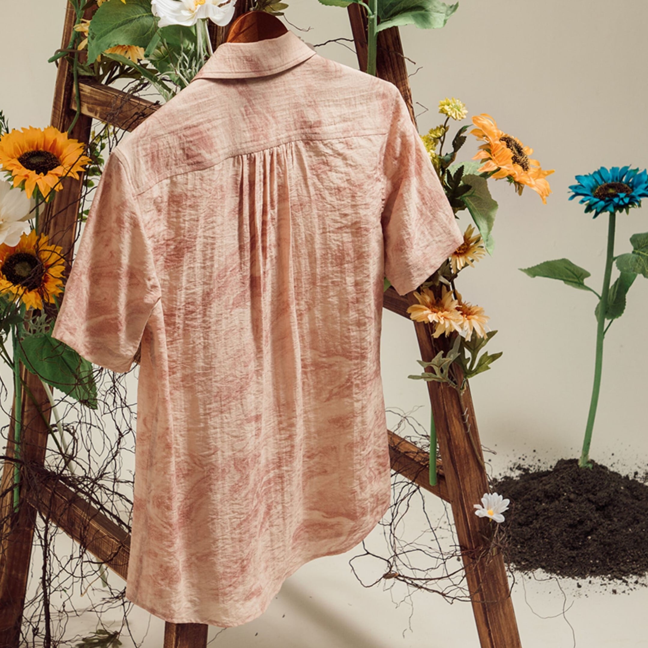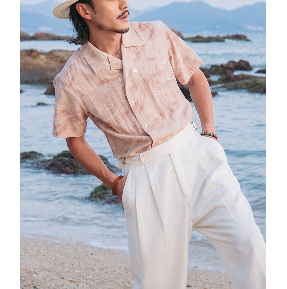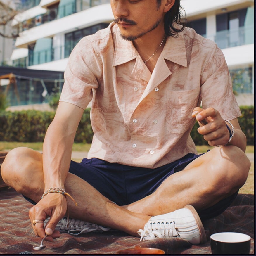 開放的な気分を演出する、リネン混オープンカラーシャツ。