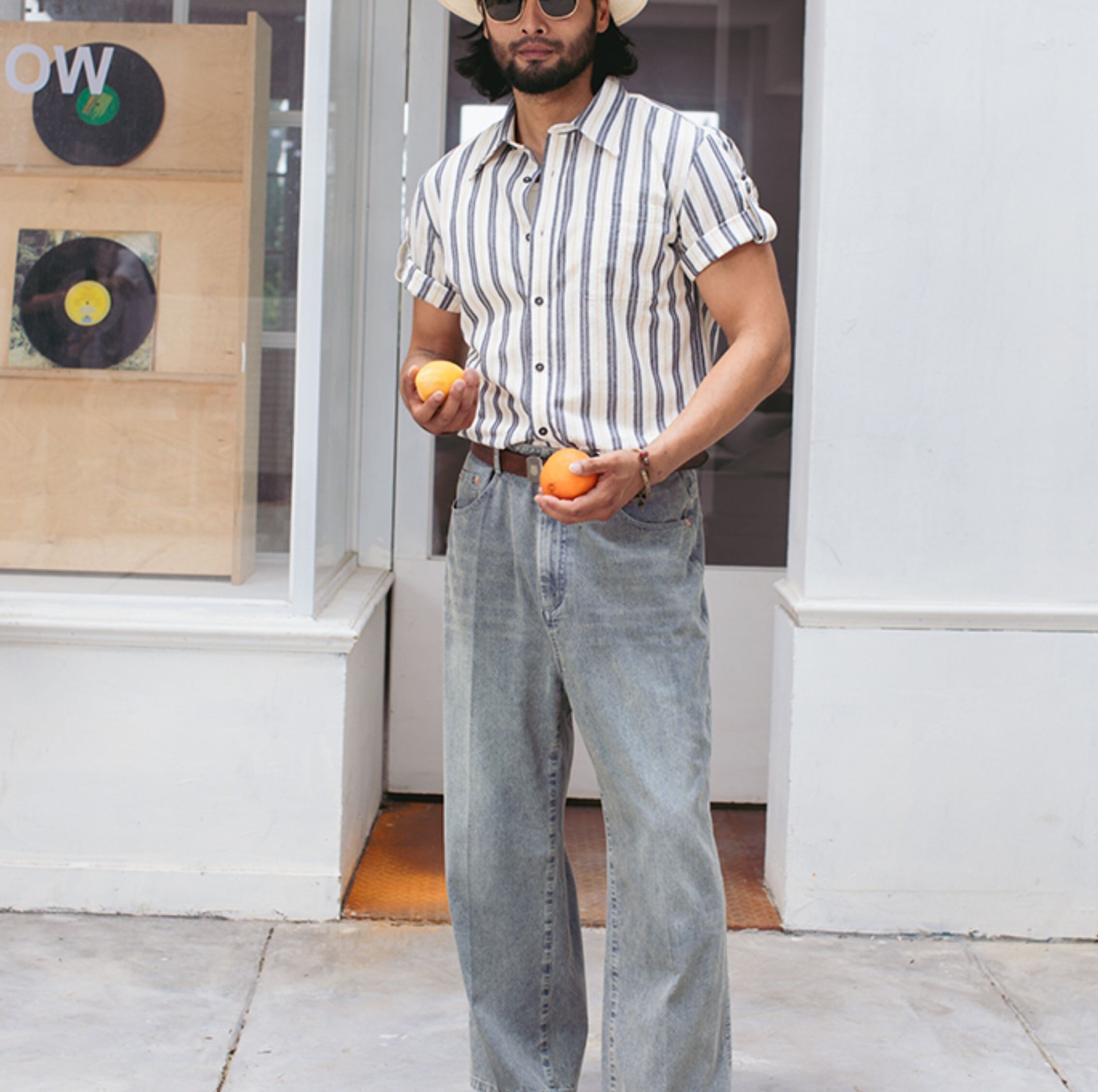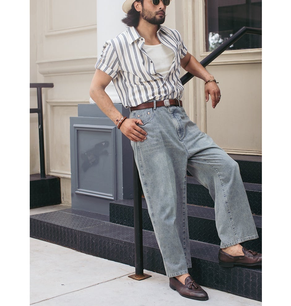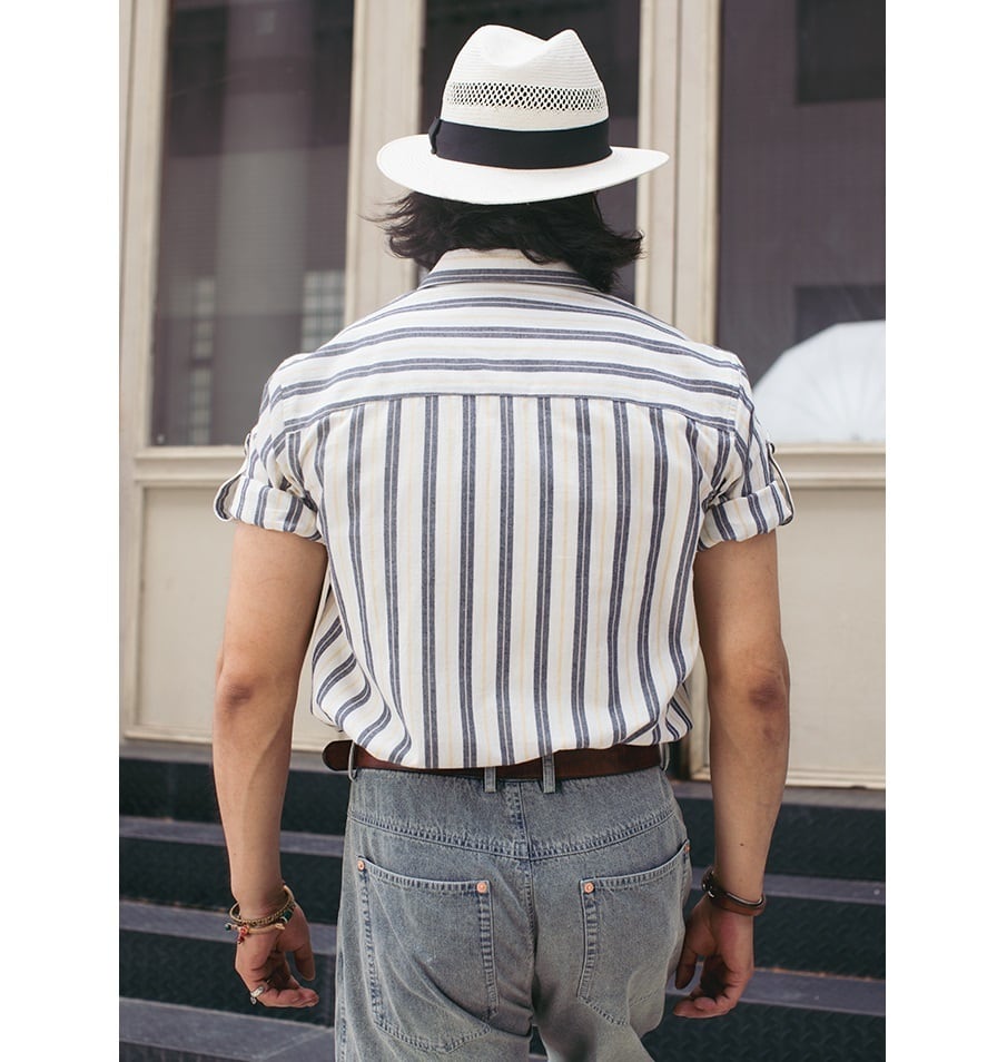 爽やかなストライプ柄が魅力の半袖コットンシャツ。