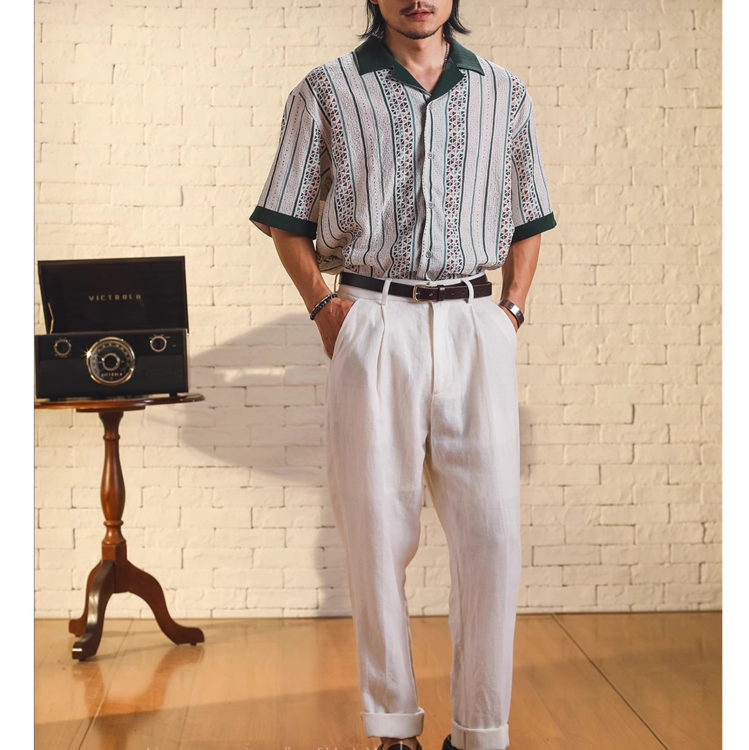 カジュアルなオープンカラーシャツですが、上品な印象も与えるため、様々なシーンで活躍します。