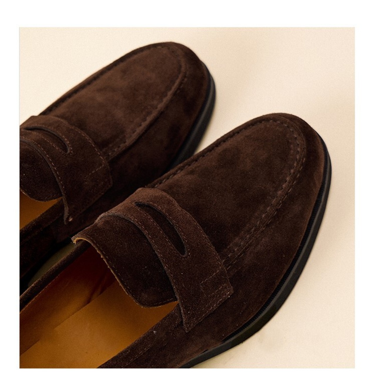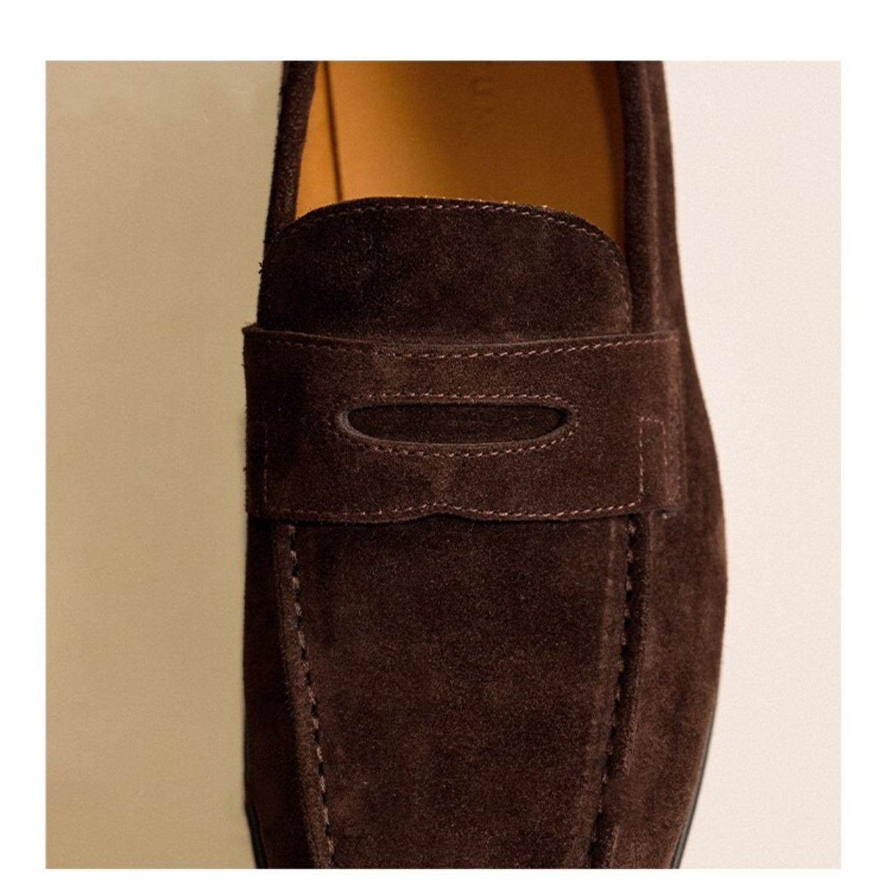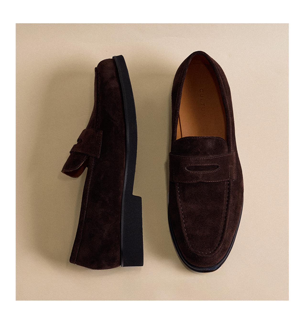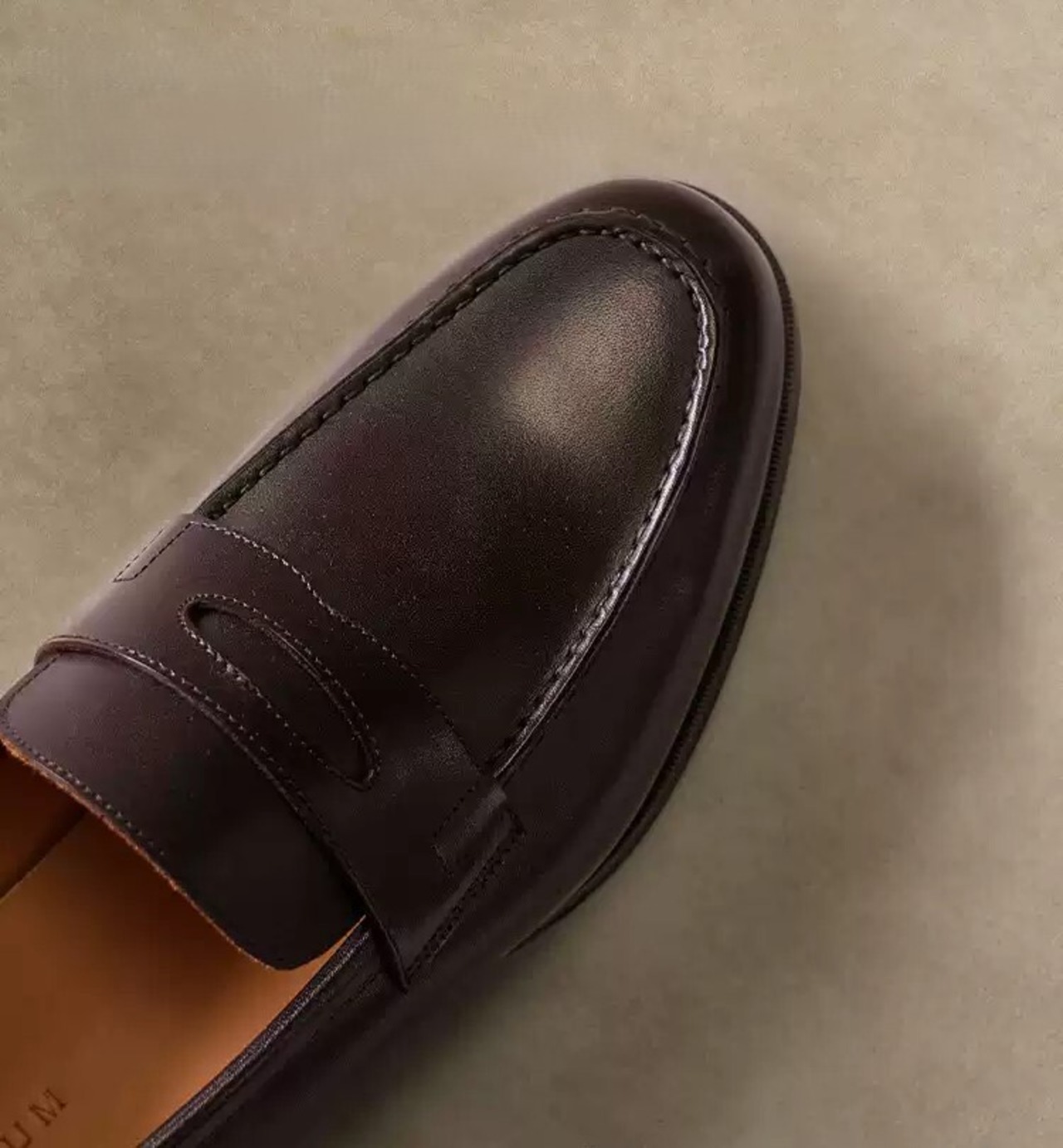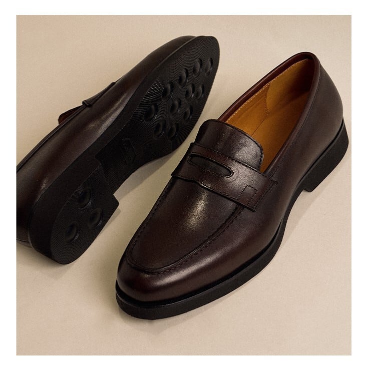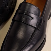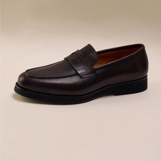 どんなスタイルにも合わせやすい、プレーントゥ スリップオン レザーローファー。