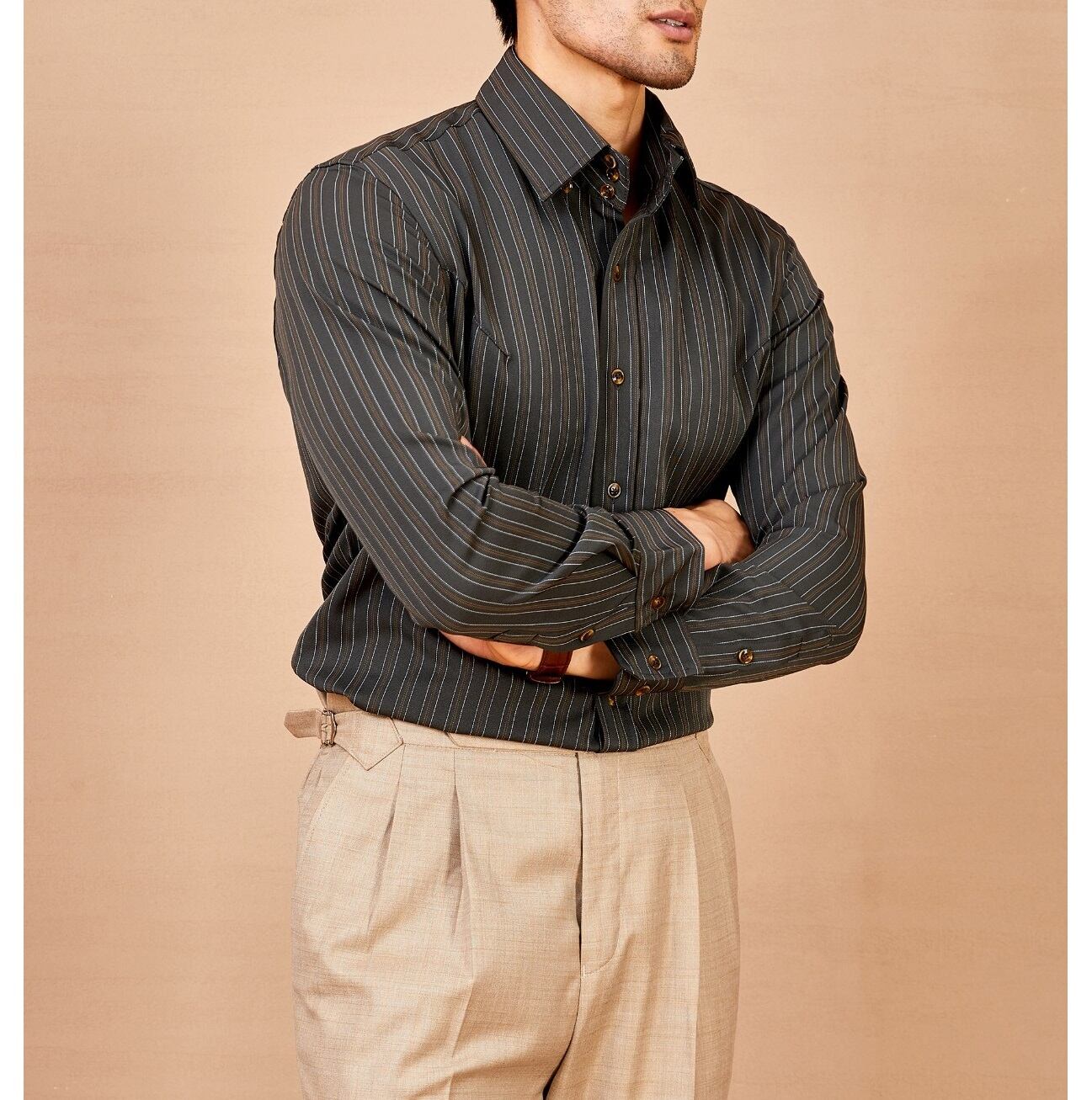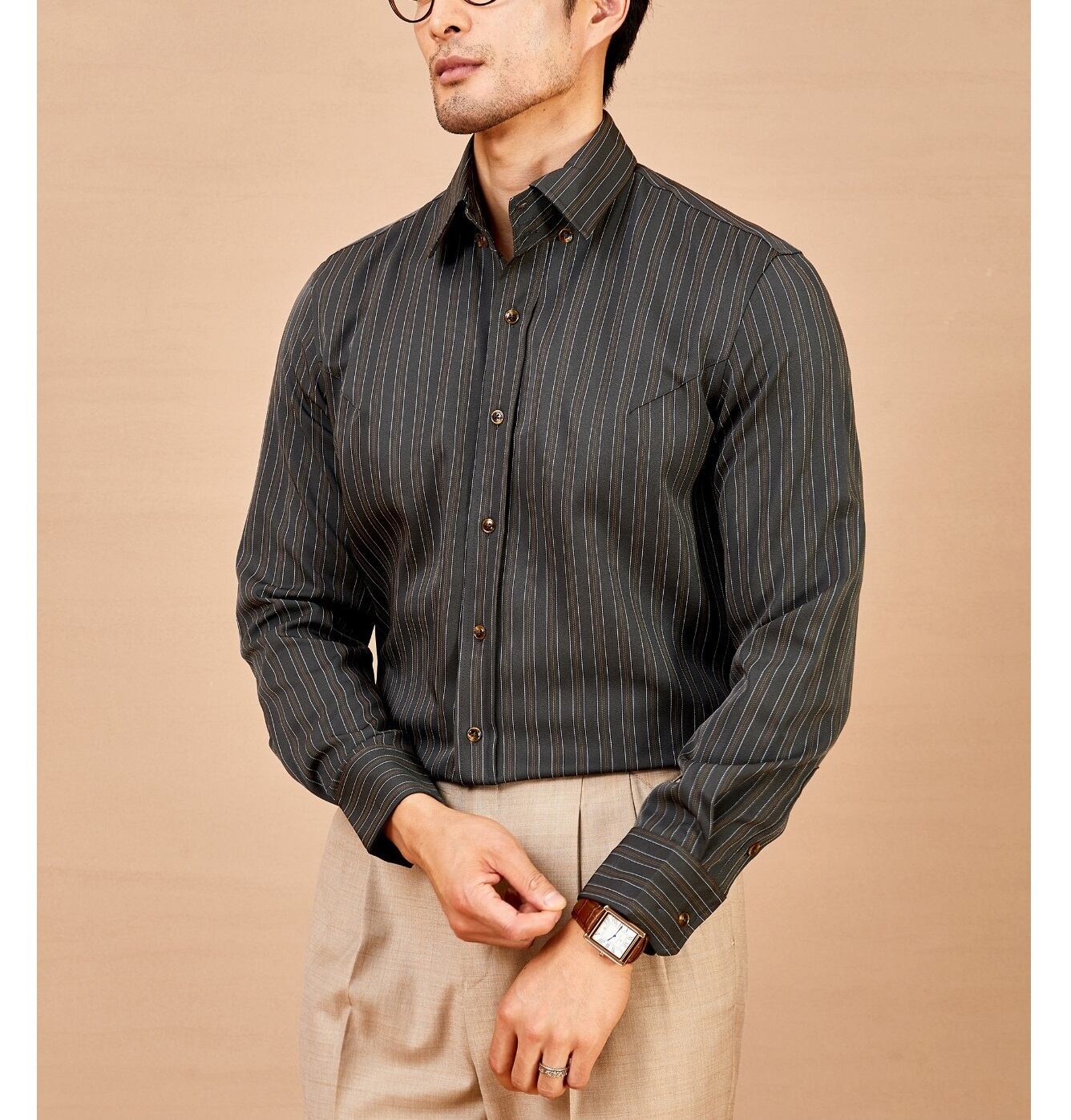 定番デザインに洗練されたディテールをプラスした、ストライプ柄長袖シャツ。