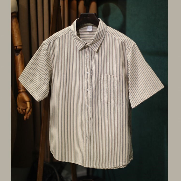 着回し力抜群のストライプ柄ショートスリーブシャツ。