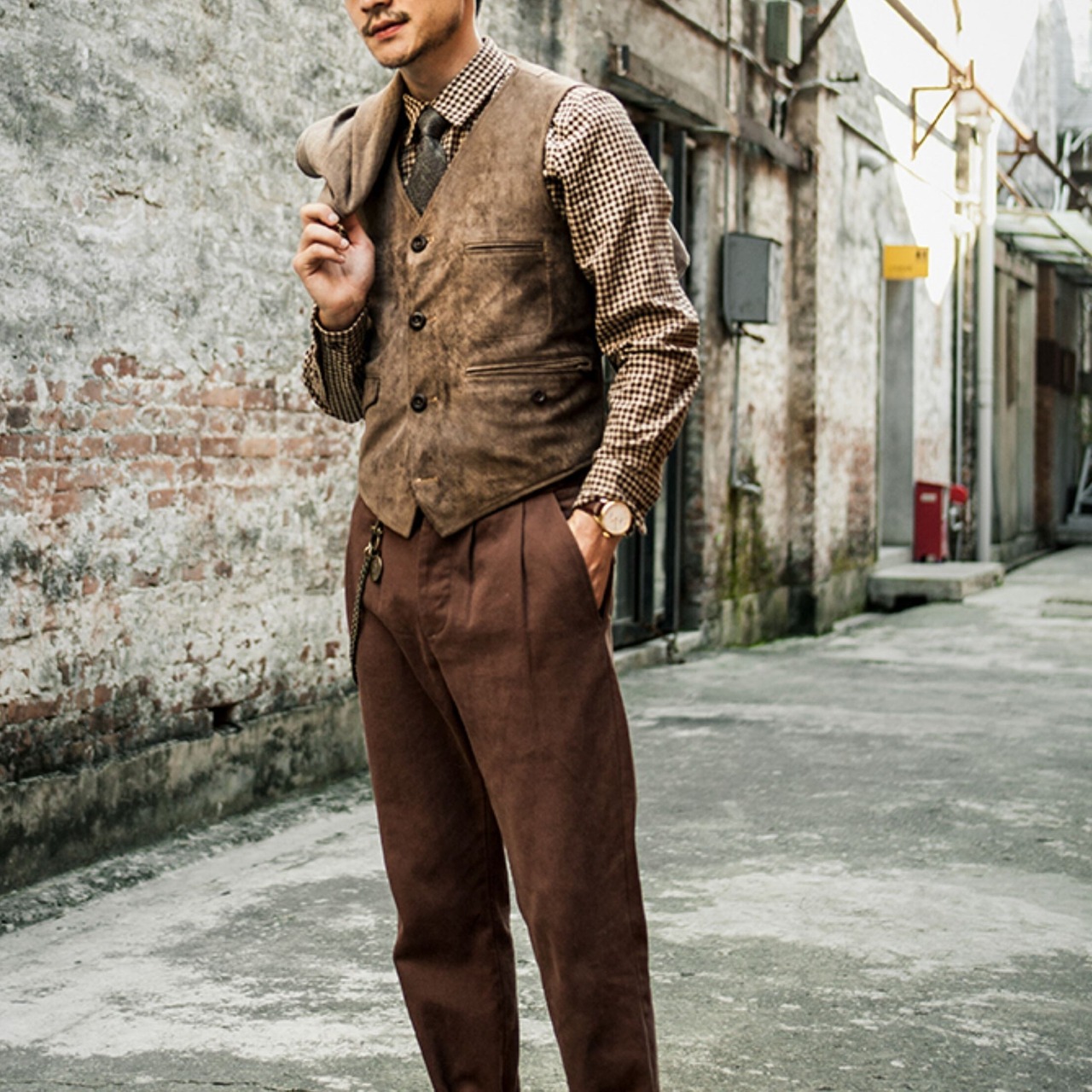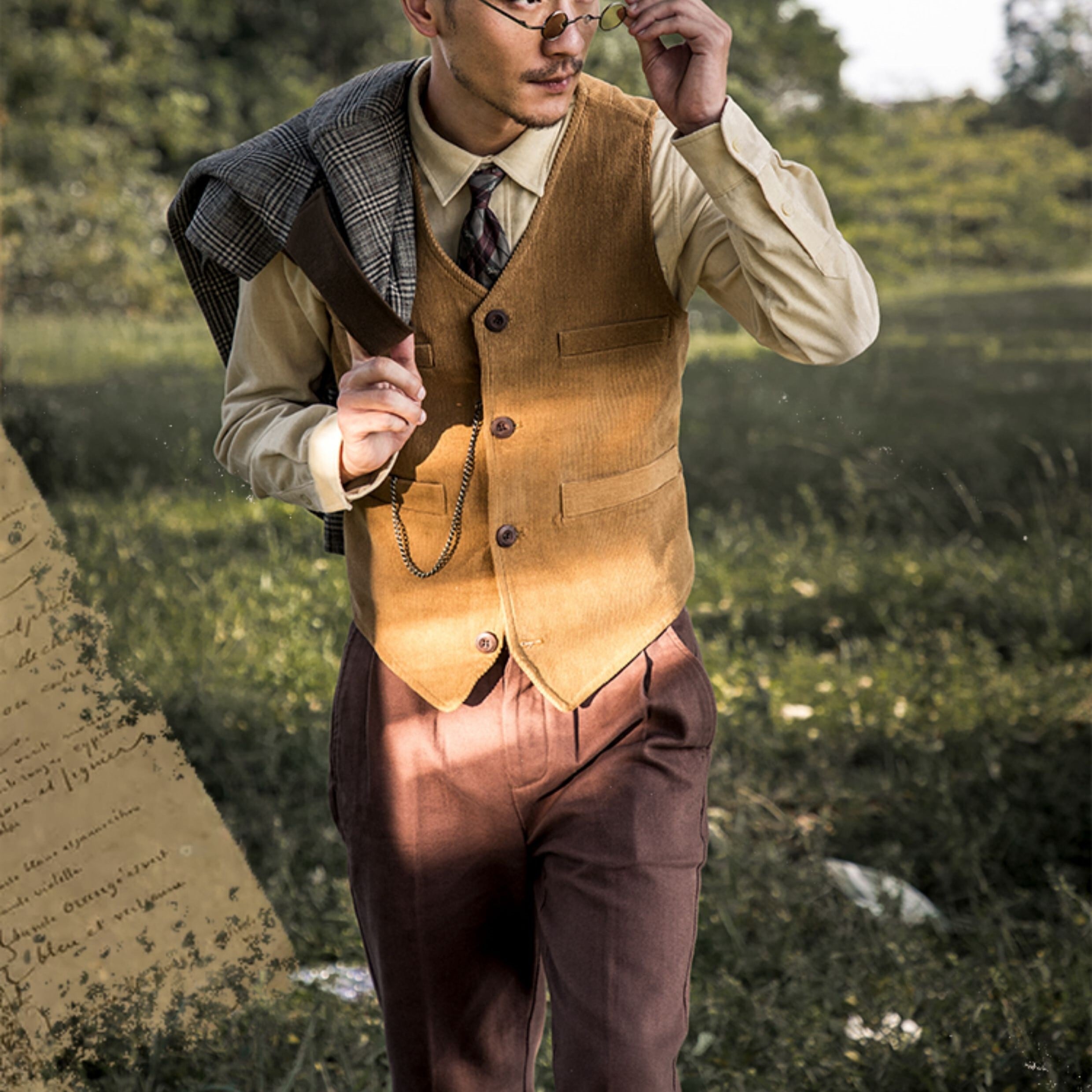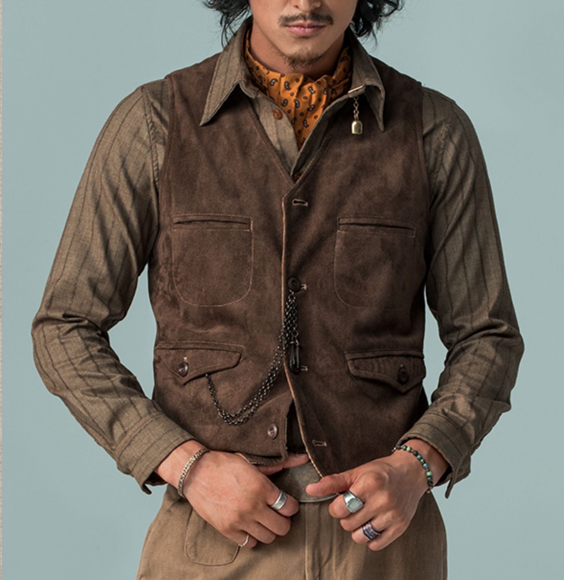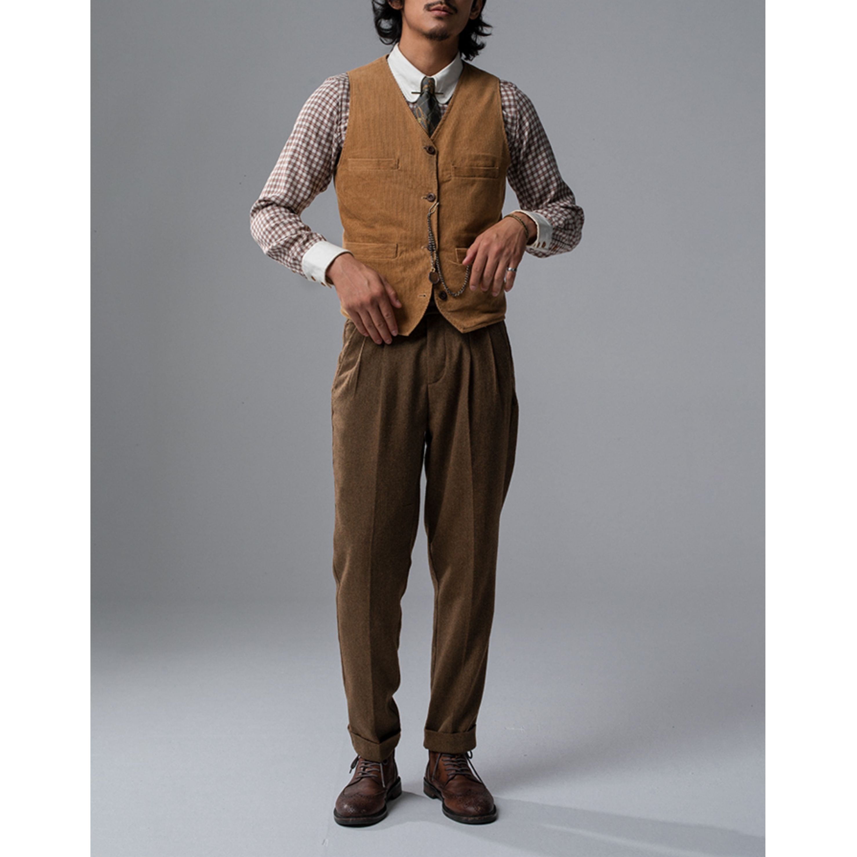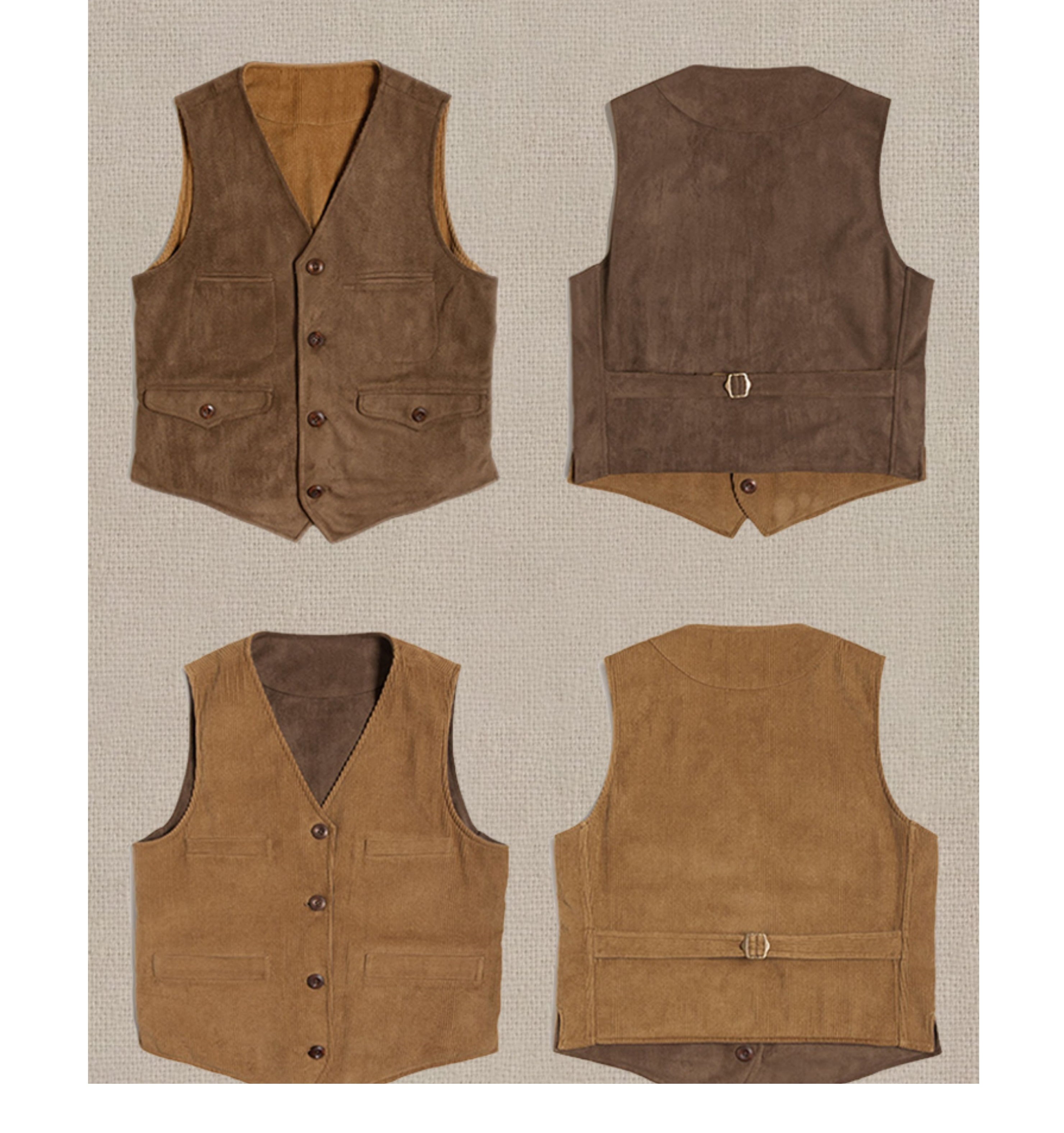 裏と表で違う表情が楽しめる、スェード調とコーデュロイの両面着用可能の優秀ベスト。