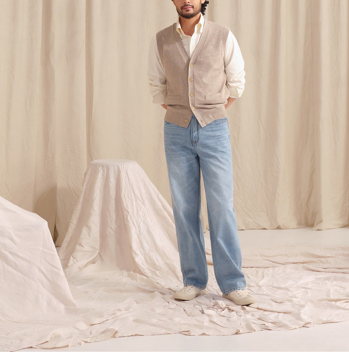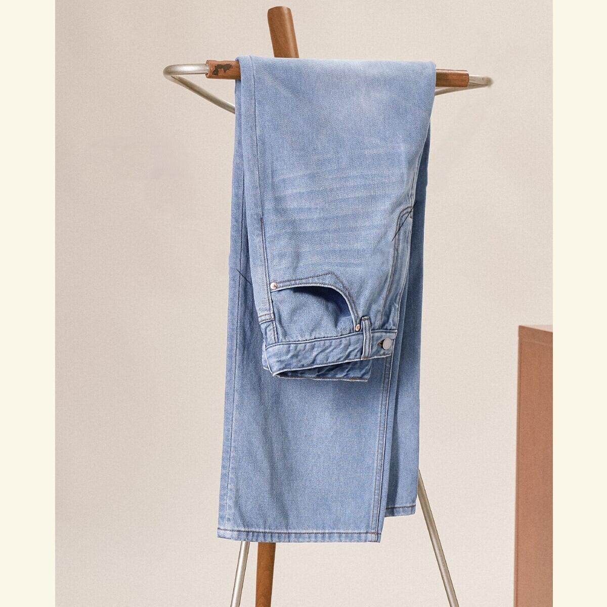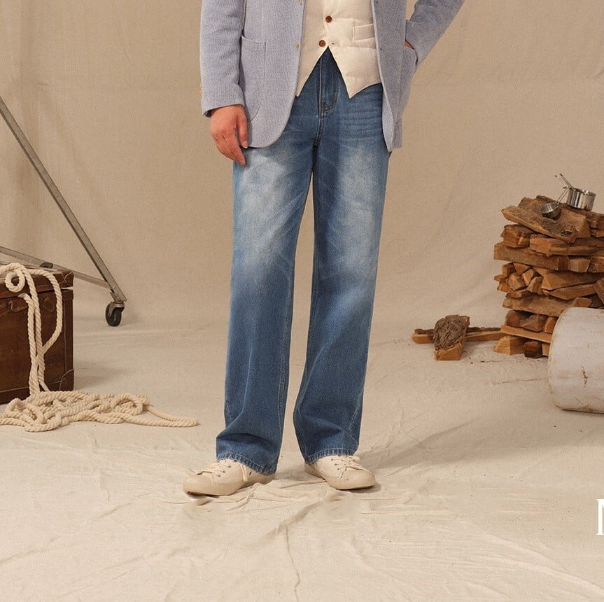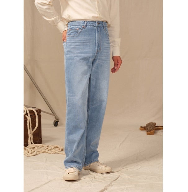 60年代風のウォッシュ加工ハイウエストデザインと、2種類から選べるフィット感が魅力。着回し力抜群のデニムパンツ。