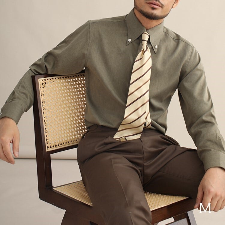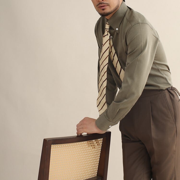 ビジネスシーンではネクタイを合わせ、落ち着いた大人のスタイルを演出できます。