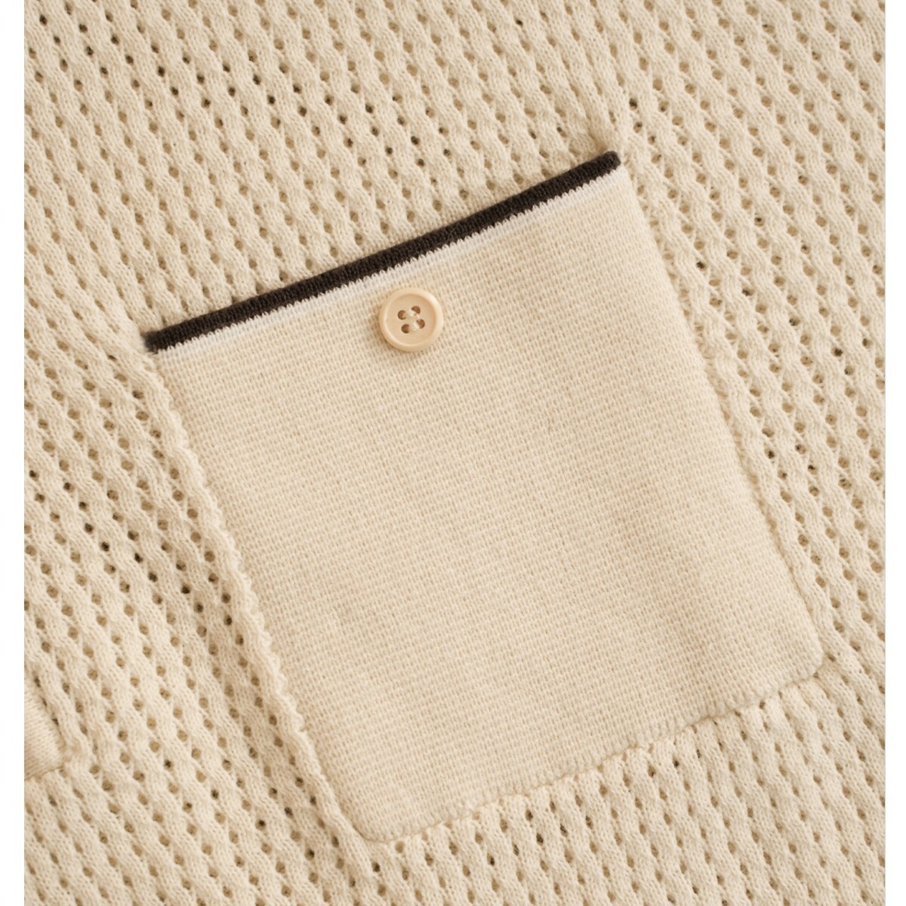 やわらかなコットンのニットポロシャツは、通気性の良い快適な着心地と上品なデザインを兼ね備えた一枚です。